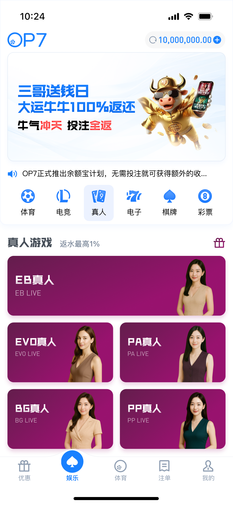 公告: 1、品牌升级公告:为促进平台长期稳定发展规划,「EMC易倍」平台已完成合规和品牌升级,即日起,品牌正式升级为 「OP7」。 2、OP7品牌跃升礼遇,VIP千万红包答谢会员! 3、新春活动即将开启!
